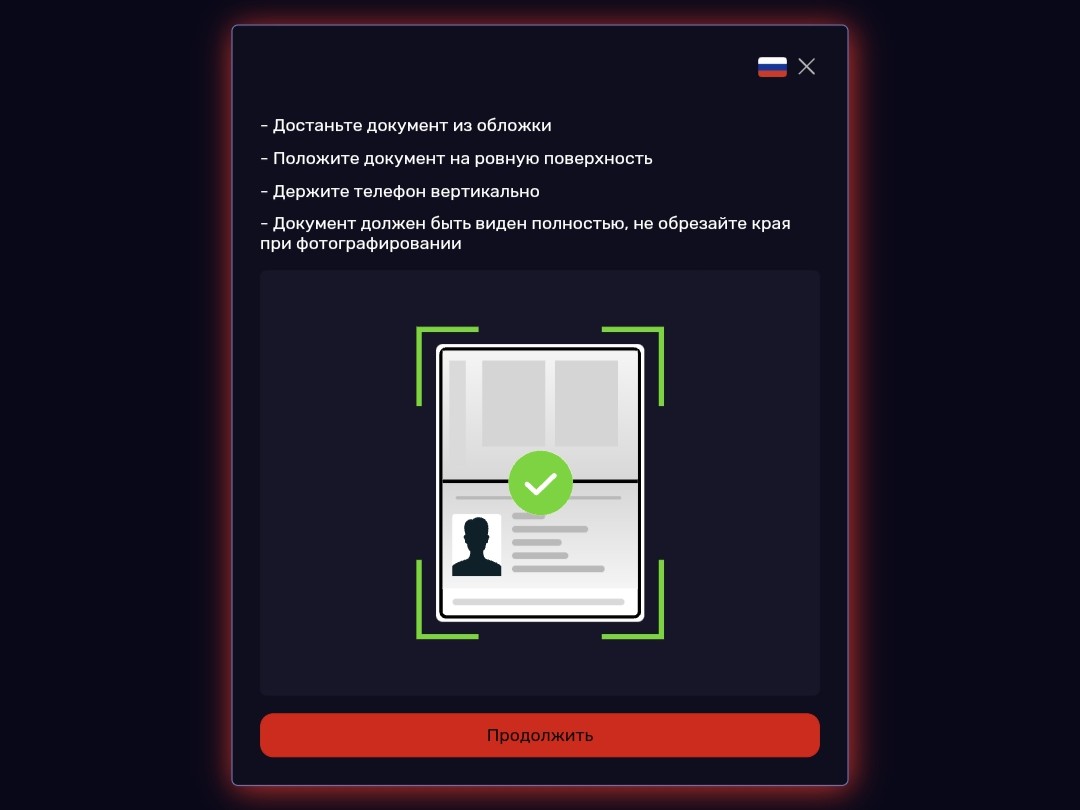 Во время прохождения проверки используйте только действительный документ и следите за качеством снимков. Фото должны быть чёткими, а документ и лицо — хорошо различимыми.