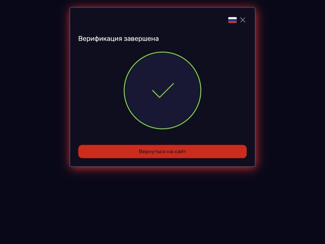 При успешном прохождении всех этапов на экране появится сообщение «Верификация завершена». После этого можно вернуться обратно в приложение.