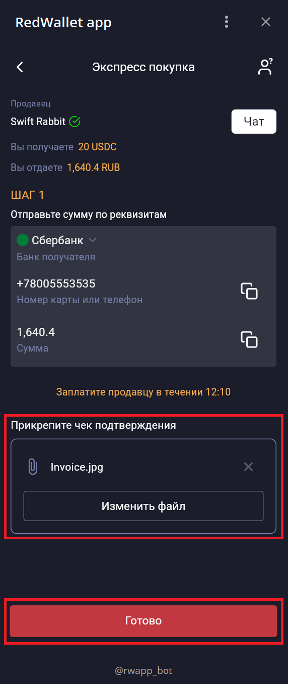 Как только продавец подтвердит получение оплаты, купленные токены автоматически поступят на ваш кошелёк RedWallet.