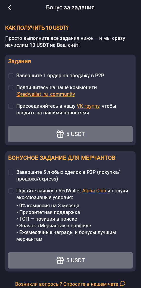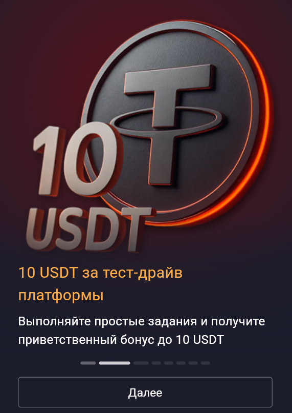 Мы подготовили для вас бонус — 10 USDT за выполнение заданий. Это быстрый способ попробовать сервис на практике и при этом получить награду.