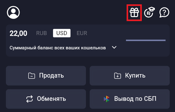 При переходе на главную страницу нажмите на иконку подарка в правом верхнем углу.